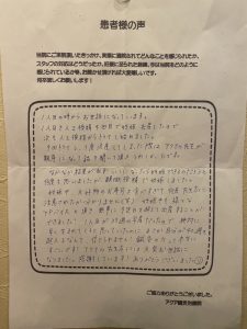 精神的にもたくさん励ましてもらって本当に助けて頂きました。