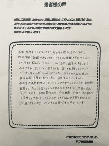ご協力ありがとうございました。 アクア鍼灸治療院スタッフ一同