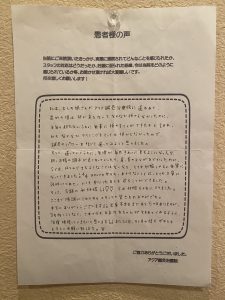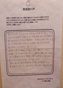 治療院のみなさんにはいつも励ましてもらって感謝しかないです。ありがとうございます。