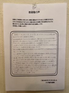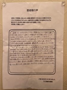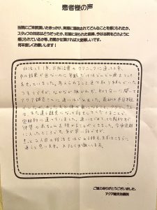 最初は正直半信半疑でしたが、やったあとに体が楽になること、クリニックとはまた違う親身になって話をしてくださることから、定期的に通っていました。