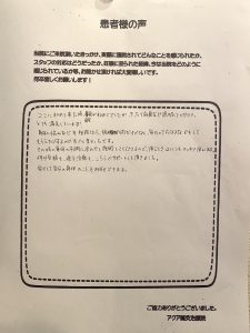 ご協力ありがとうございました。 アクア鍼灸治療院