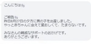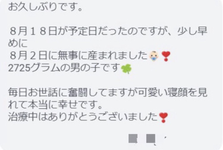 先生方のおかげで我が子に会えて本当に嬉しく思っています。