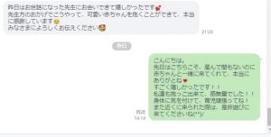 その結果、3か月後に自然妊娠(タイミング)で妊娠することが出来、現在妊娠14週です。まだ出産まではしばらくありますが、引き続きお世話になるつもりです。