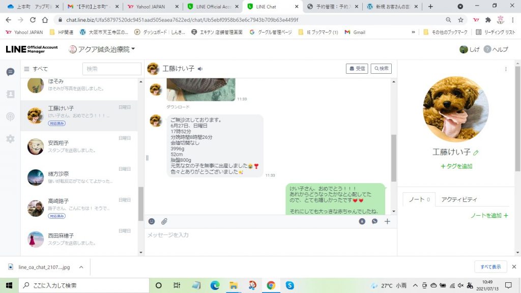 2021.7.20に女の子を出産しました。