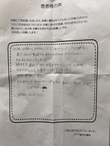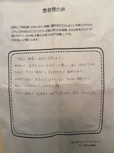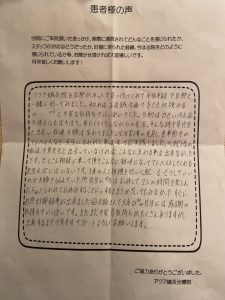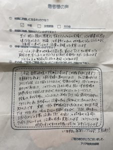 鍼での治療はもちろんですがたくさん話を聞いていただき精神面でも支えていただきました。