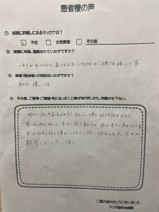 施術のあと、とても身体がすっきりしました! 落ち着いてリラックスできる医院でした。