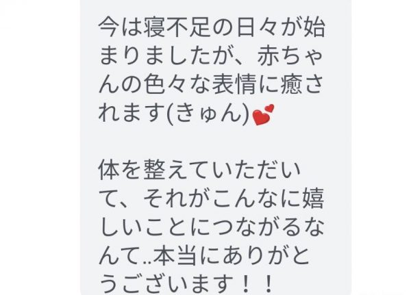 体を整えていただいて、それがこんなに嬉しいことにつながるなんて‥本当にありがとうございます!!
