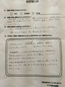 ご協力ありがとうございました。アクア鍼灸治療院