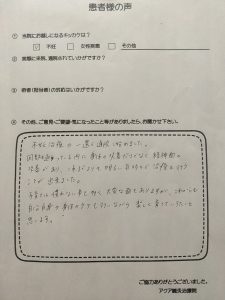 施術途中から行けなくてすみません。