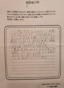 今も体調が万全ではなく引き続き通わせて頂いてます。