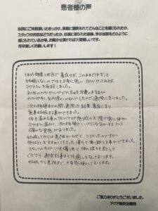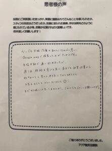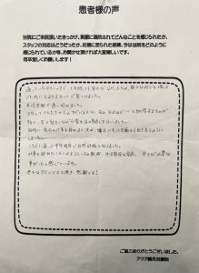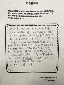 ご協力ありがとうございます。アクア鍼灸治療院。